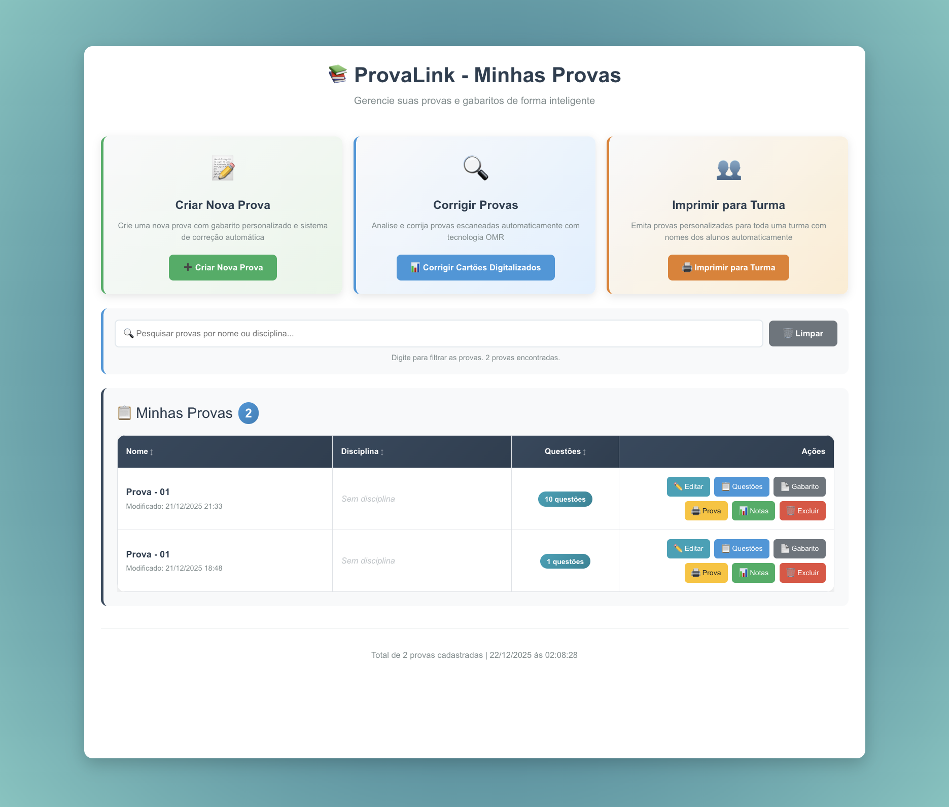 O ProvaLink foi desenhado para manter a praticidade do papel e entregar o controle e a análise do digital.
